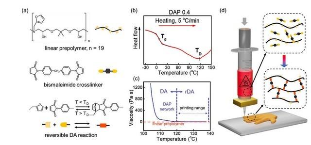 該團(tuán)隊進(jìn)一步測試了其DAP網(wǎng)絡(luò),將具有不同機(jī)械性能的不同交聯(lián)密度進(jìn)行匹配,以創(chuàng)建具有機(jī)械失配界面的零件。使用多個注射器擠出機(jī),用三種不同的材料對對象進(jìn)行3D打印,每個擠出機(jī)都有一個單獨(dú)的DAP。簡要壓力測試表明,該組件比使用常規(guī)FDM聚合物材料生產(chǎn)的零件具有更高的強(qiáng)度。
