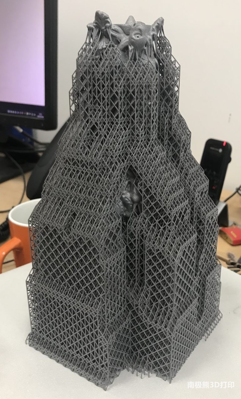 3D打印的燭臺結構,周圍有金屬支架,圖片來自雷尼紹