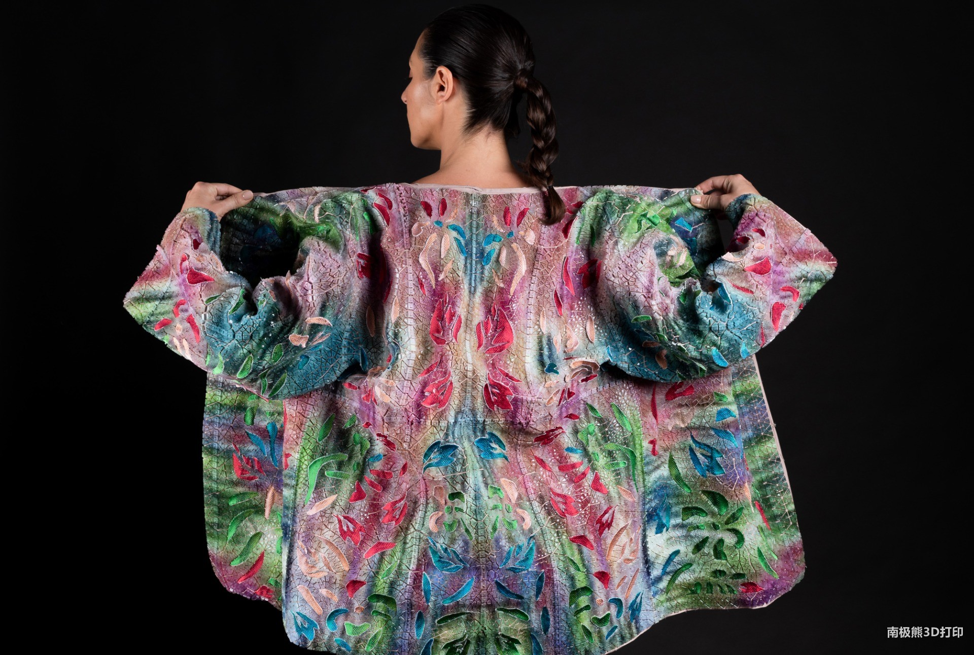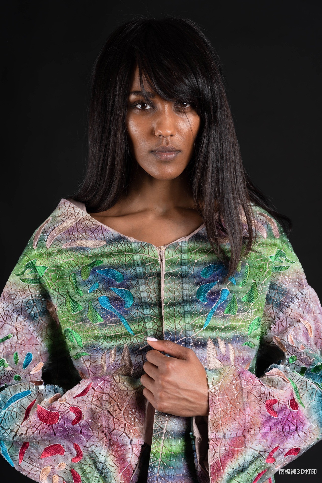 Stratasys與Goldstein的合作重點(diǎn),是將傳統(tǒng)工藝方法與3D打印相結(jié)合,制作出一件日式禮服。她的和服設(shè)計(jì)靈感來自亞洲工藝刺繡和紡織品繪畫,遵循日本的 "ikat "著色方法,通過3D人體掃描的算法,在打印過程中將設(shè)計(jì)打印到紡織物布料上,最后再將這些布料做成服裝。