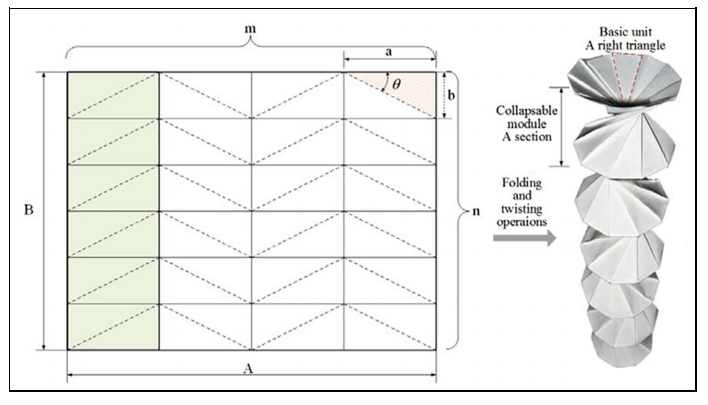 可折疊彈簧的靈感來自一個折疊并扭曲成均勻直角三角形的紙矩形。