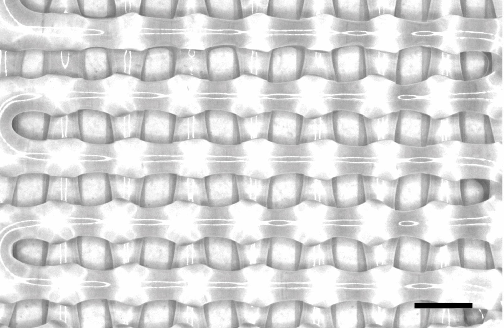 在萊斯大學開發的機器學習算法的幫助下設計出了一種“高質量”的3D打印生物支架。比例尺等于1毫米。 (圖片由Mikos研究小組提供)
