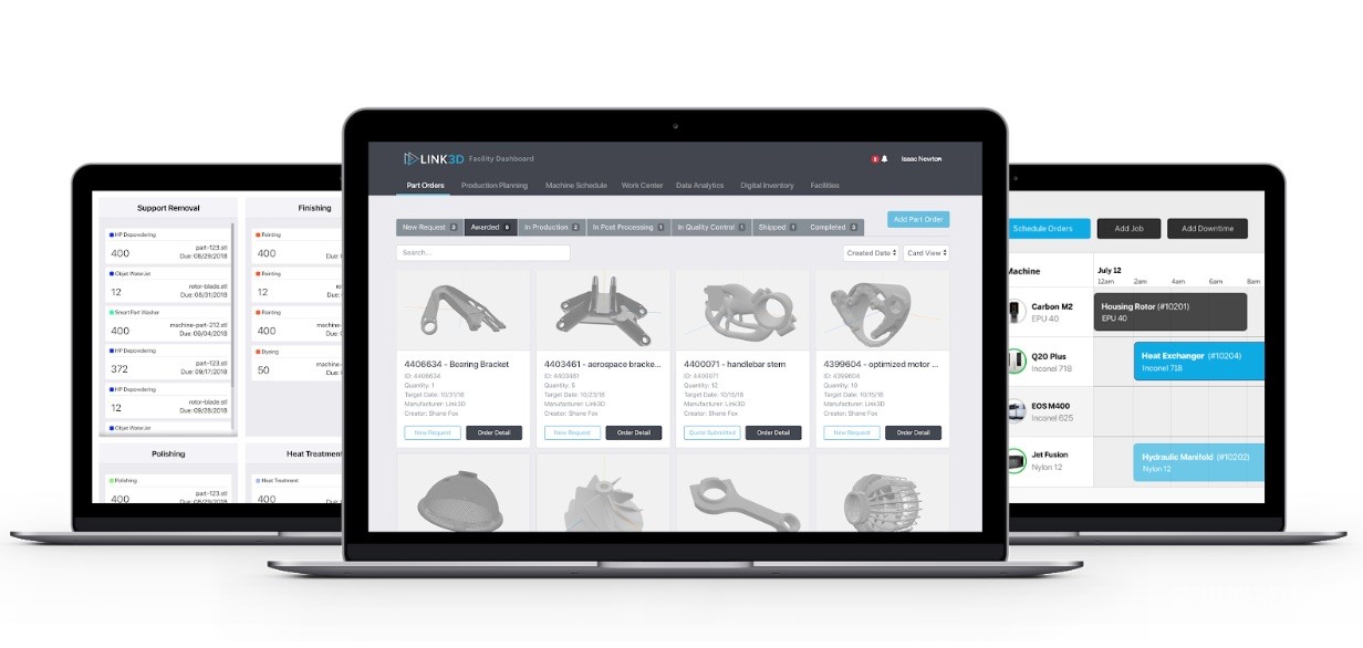 2018年,Link3D為他們增材制造工作流軟件推出了一個新的生產計劃和制造調度系統,幫助用戶最大限度地提高機器利用率,跟蹤產量以及產能管理。同年晚些時候在Formnext上,Link3D推出了后處理管理技術,以優化3D打印供應鏈中的下游制造流程。
