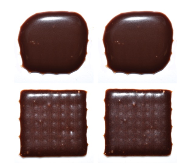 而使用Ci3DP方法,將容易獲得的巧克力產品(如糖漿和糊狀物)與可可粉混合,以改變墨水的流變性。具有高濃度可可粉的巧克力基油墨具有高粘度的剪切稀化特性。油墨還具有類似牙膏的特性,在靜止時不會流動。