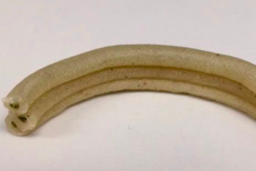 為了印刷面糊少一點的面糊,研究小組進行了最后的實驗,他們使用同軸擠壓技術來生產圓柱狀樣品。在小吃的最新版本中,其綠色已轉變為更傳統的淺棕色,這可能為創造更美味的零食奠定了基礎。