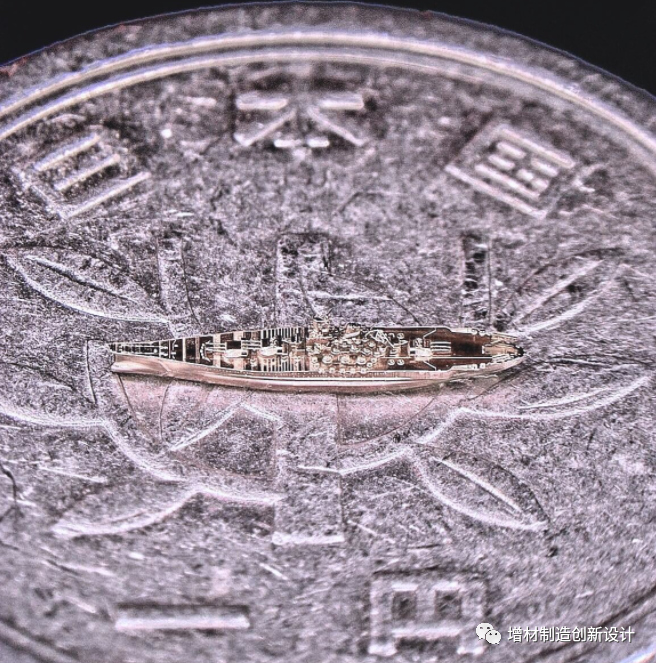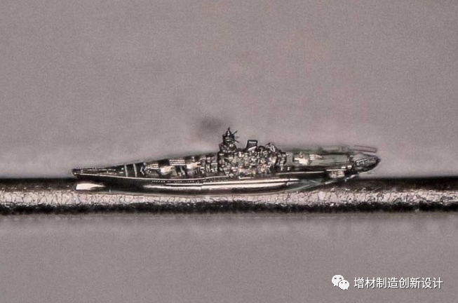這個尺寸的東西,我們?nèi)庋劭吹蕉己芾щy了,要制造出這樣大小的戰(zhàn)列艦簡直天方夜譚。但是,日本的一家精密加工廠,用3D打印技術(shù)制造出了只有頭發(fā)絲直徑的“大和號”戰(zhàn)艦模型,放在手指上就是一個閃光的白點。