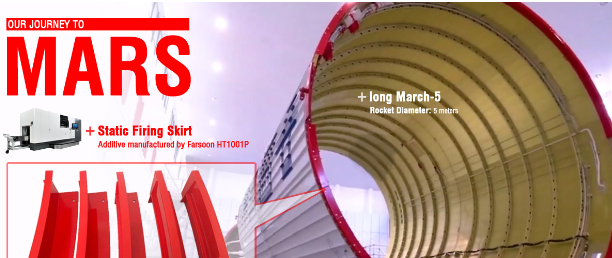 中國邁出了對太陽系進行行星探索的第一步,于2020年7月23日向火星派出了一支長征5火箭。這不僅是其首款從頭開始專門針對非超液體火箭的運載火箭推進劑,但它也包含增材制造零件。當地3D打印系統供應商Farsoon Technologies使用激光燒結平臺和高性能聚合物粉末材料為火箭的靜態射擊裙生產了50個零件,該零件在平臺和后支撐環之間提供了臨時結構介質,以保護解鎖裝置。機器的連續運行有助于提高高質量的功能性最終靜電點火裙的生產速度并降低制造成本,該裙邊由50個單獨的3D打印件組成,每個件的尺寸為370 x 100 x 125 mm,并且僅用48小時即可完成生產,由Farsoon撰寫。組裝后,這些零件就構成了直徑為5,000毫米的圓柱結構。