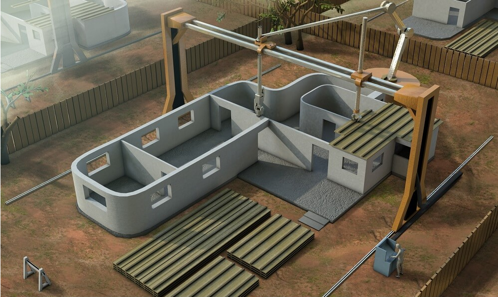 美國政府的國防創新部門(DIU)先前已與德克薩斯州的建筑公司ICON合作,展示了混凝土3D打印的潛在軍事應用,而混凝土專家QUIKRETE和Contour Crafting Corporation(CC Corp)已合作進行住宅的自動化建筑洛杉磯使用CC Corp的混凝土印刷技術的商業和工業建筑。