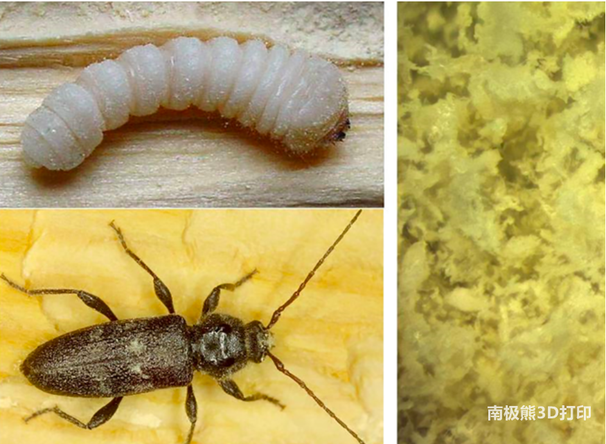 利用微小蟲子進食后留下的粉末狀木質顆粒和糞便,科學家們能夠炮制出一種獨特的循環經濟原料,這種原料可以在沒有任何聚合物添加劑的情況下進行粘結劑噴射3D打印。這種生物基材料產生的零件強度低,但尺寸精度高,有可能成為未來創造環?;ńz結構的理想材料。