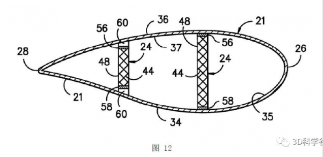 根據3D科學谷的市場研究發現,GE在探索通過3D打印-增材制造、自動纖維沉積的技術以及利用CNC控制和多種自由度來沉積材料制造具有格構結構的輕質轉子葉片構件(如抗剪腹板)。這其中由3D打印形成轉子葉片構件的內部格構結構包括多個開孔。
