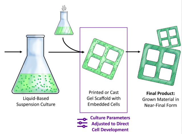 研究人員的3D生物打印方法使他們能夠生產(chǎn)具有70%以上細(xì)胞活力的生物基結(jié)構(gòu)。圖片來(lái)自《清潔生產(chǎn)雜志》。