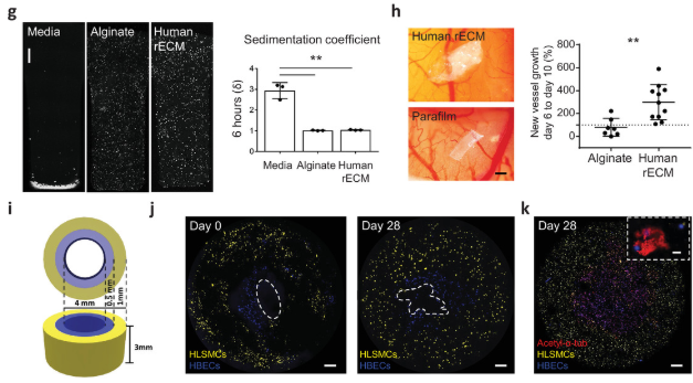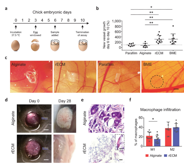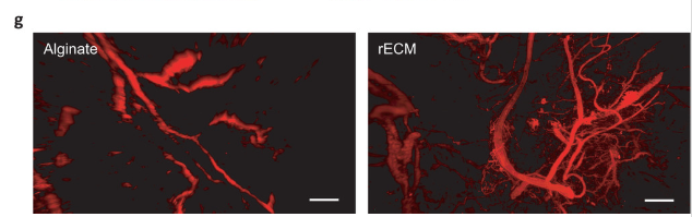 rECM水凝膠的生物相容性和血管生成潛力。圖片來自隆德大學(xué)。