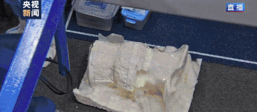 使用3D掃描儀將文物以及其周邊的信息數據進行搜集,然后通過3D打印機打印出一模一樣的石膏模型。用這個打印出的石膏模型制作了貼合嚴密,保護性強的硅膠保護套,將保護套貼合在文物上后,再使用套箱的方式提取文物。