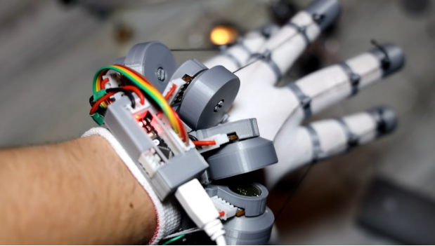 手套的大多數結構部件都是3D打印的。攝影:Lucas VRTech。
