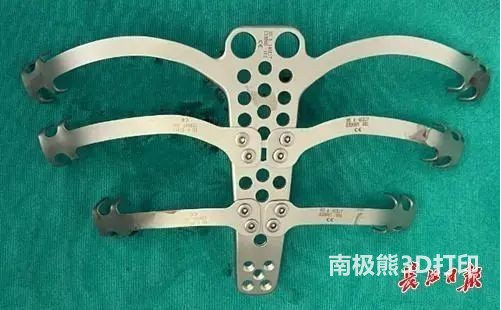 醫院心胸外科高旭輝主任立即組織全科大討論,決定運用3D打印技術建模,為唐女士量身定制鈦合金材質的“輕便”胸骨肋骨復合體,置換進胸腔。