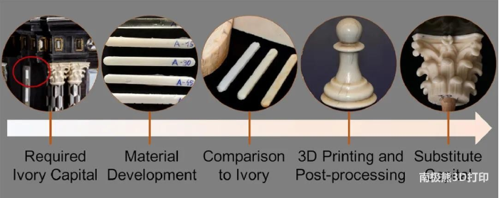 由于1989年由瀕危野生動植物種國際貿易公約 (Convention on International Trade in Endangered Species , CITES) 頒布的象牙貿易禁令,象牙資源變得有限。從倫理上講,象牙的使用是不合理的。目前,在多年凍土儲層中發現的猛犸象牙仍然可以買到,但仍在激烈地討論是否將其納入CITES。為了恢復或保存最初由象牙雕刻而成的文化和宗教文物,現在通常使用替代材料。象牙有時被天然材料代替,例如骨頭、貝殼或所謂的植物象牙,如塔瓜棕櫚樹的堅果或賈里納種子?;蛘?,也可以使用由聚合物復合材料制成的各種人造的象牙替代品,這些復合材料具有無機顆粒、酪蛋白或者是象牙的鋸屑。這些替代品大多是散裝的,要雕刻出所需的形狀可能要花費大量的時間和精力。尤其是精致的結構會消耗各種資源。因此,開發可以通過增材制造(AM)技術進行處理的替代材料可提供一種資源友好的替代方案。另外,通過使用AM,可以重新捕獲原始藝術家的風格,因此可以完全按原樣保留藝術品的特征和外觀。
