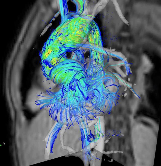 “模型提供了整個心動周期中,每個解剖部位全面的血流動力學信息。模型展示出患者心臟內的血流在各方面都高度異常,并證實了與典型的三尖瓣閉鎖患者相比,該患者在Fontan手術后的泵血效率可能仍然更低。這種先進的4D流動核磁共振成像分析模型為指導今后潛在的管理變更提供了寶貴的信息?!?/span>