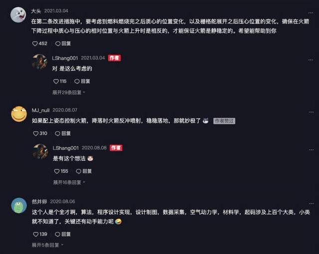 截至目前,劉上的抖音賬號已有近14萬粉絲,累計獲贊超過80萬。這位“00后”小伙用視頻記錄下火箭研制的細(xì)節(jié),評論區(qū)成了火箭愛好者們交流切磋的地方。很多抖音網(wǎng)友積極互動、提問,給出技術(shù)建議。