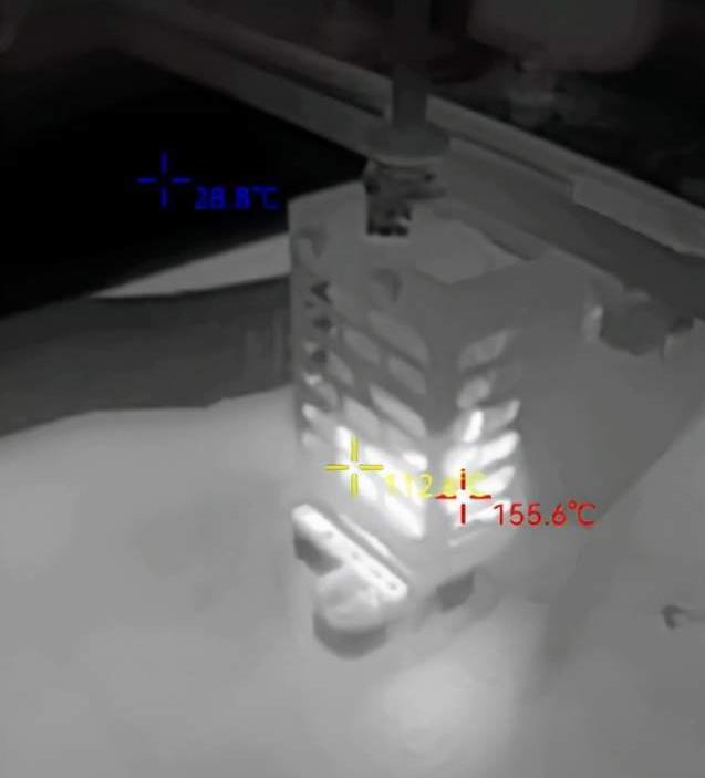 在最新的一條抖音視頻里,劉上記錄了熱成像視角下,熔融擠出成型(FDM)3D打印的過程。