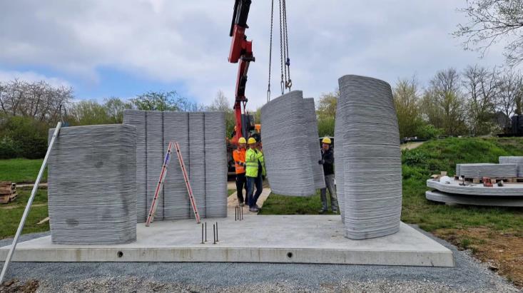 2023年8月9日,MENSE KORTE在北萊茵-威斯特法倫州使用無水泥混凝土建造了一座3D打印小屋,這一案例突顯了使用更可持續的建筑材料進行打建筑3D打印的優點。這一富有遠見的建設項目是由來自勞普海姆的專門從事 3D 打印預制部件的 R?ser GmbH、國際建筑化學產品開發商和制造商 MC-Bauchemie 以及來自明斯特蘭的規劃辦公室 MENSE KORTE 共同完成的,建造周期總計18個月。
